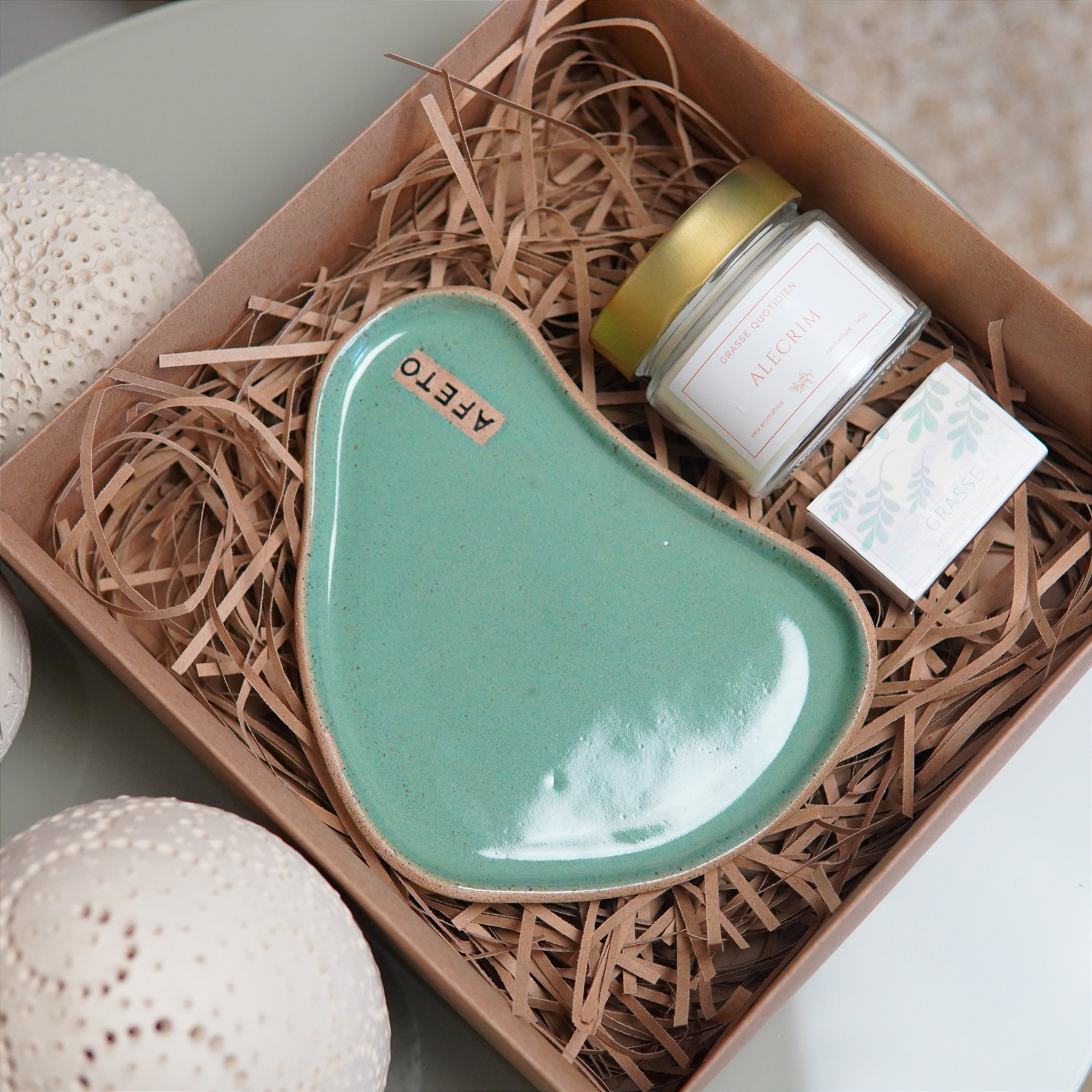 Este kit é composto por uma vela da linha quotidien (140g) e um prato orgânico em cerâmica.